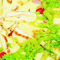 Пицца с лососем, соусом Цезарь и зелёным салатом.